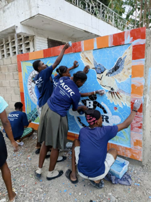 They are supported by commissions from citizens and business owners in Jacmel, as well as from Jacmel’s Office of Tourism, encouraged by the Office of Culture and the Mayor, grants from Arcades (E.U. in collaboration with the Haitian Ministry of Culture), and the U.S. Embassy.